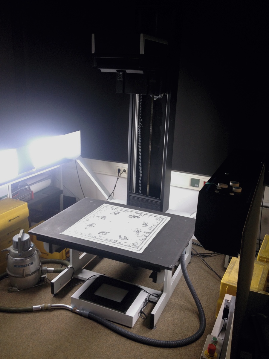 Scannen einer Original-Zeichnung mit spezieller Cruse-Camera.