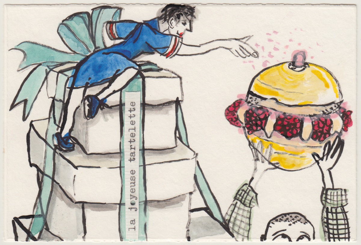 Postkarte an Brian Joyeux, Bruxelles, als Dank für seine einzigartigen Pâtisserie-Künste.